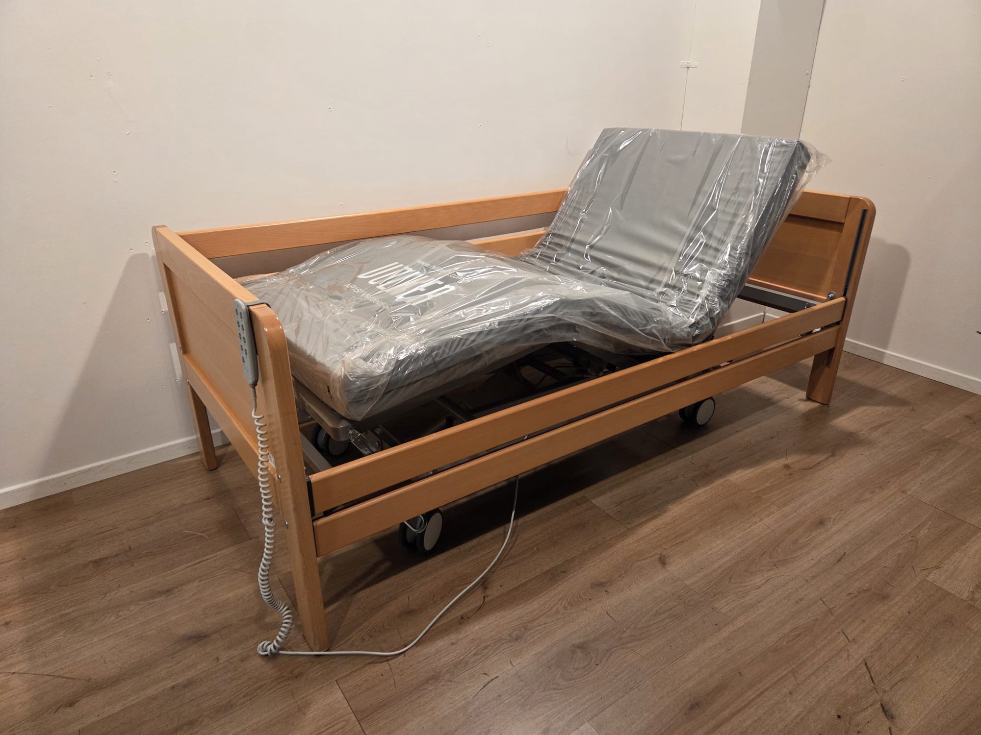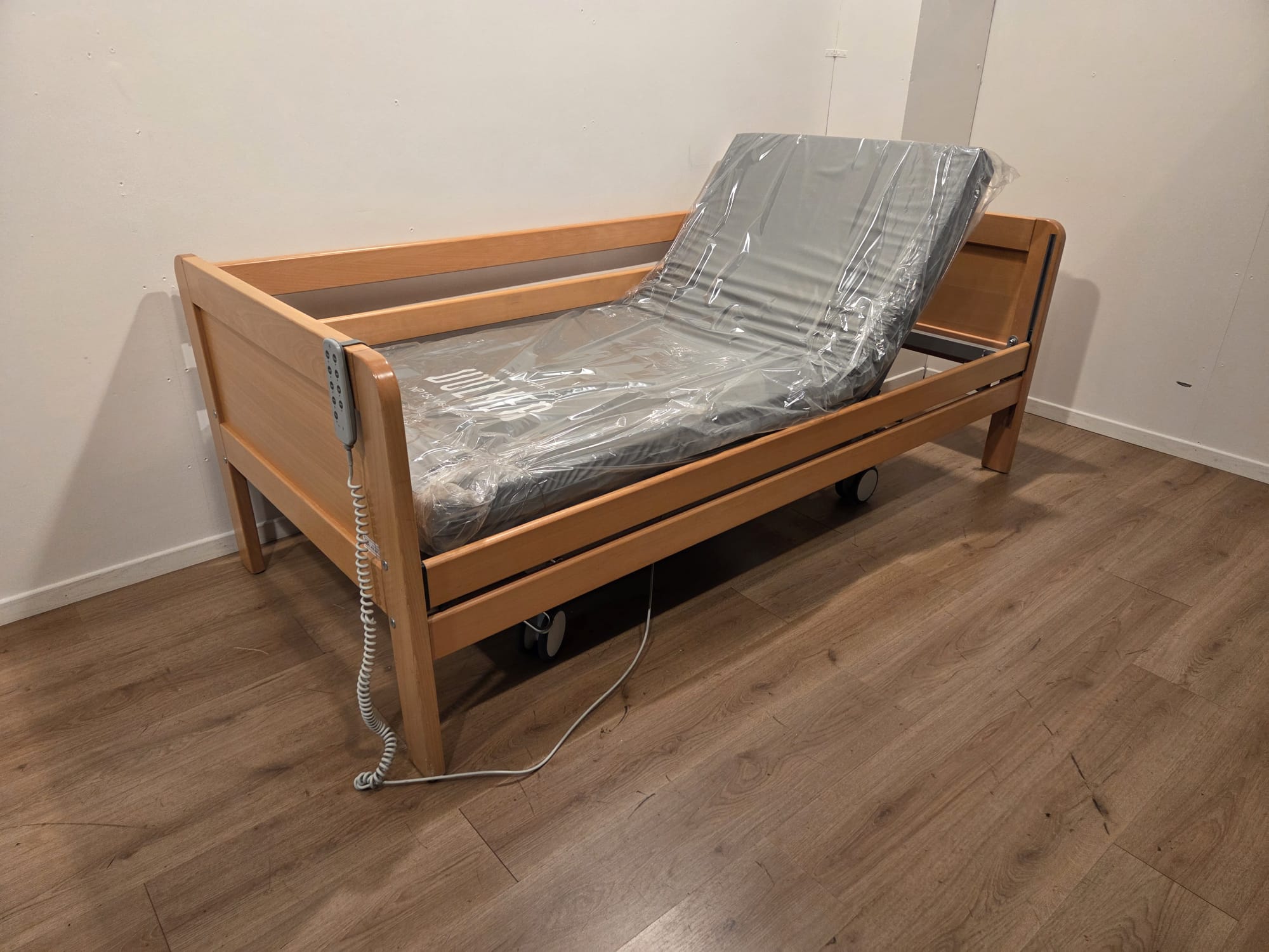 Het Braekevelt HL #73A Elektrisch Hoog-Laag Thuiszorgbed is een kwalitatief hoogwaardig zorgbed dat comfort en functionaliteit biedt. Het bed kan geleverd worden met een normaal of koudschuim incontinentiematras, ideaal voor zorgsituaties waarin hygiëne en gemak van groot belang zijn.